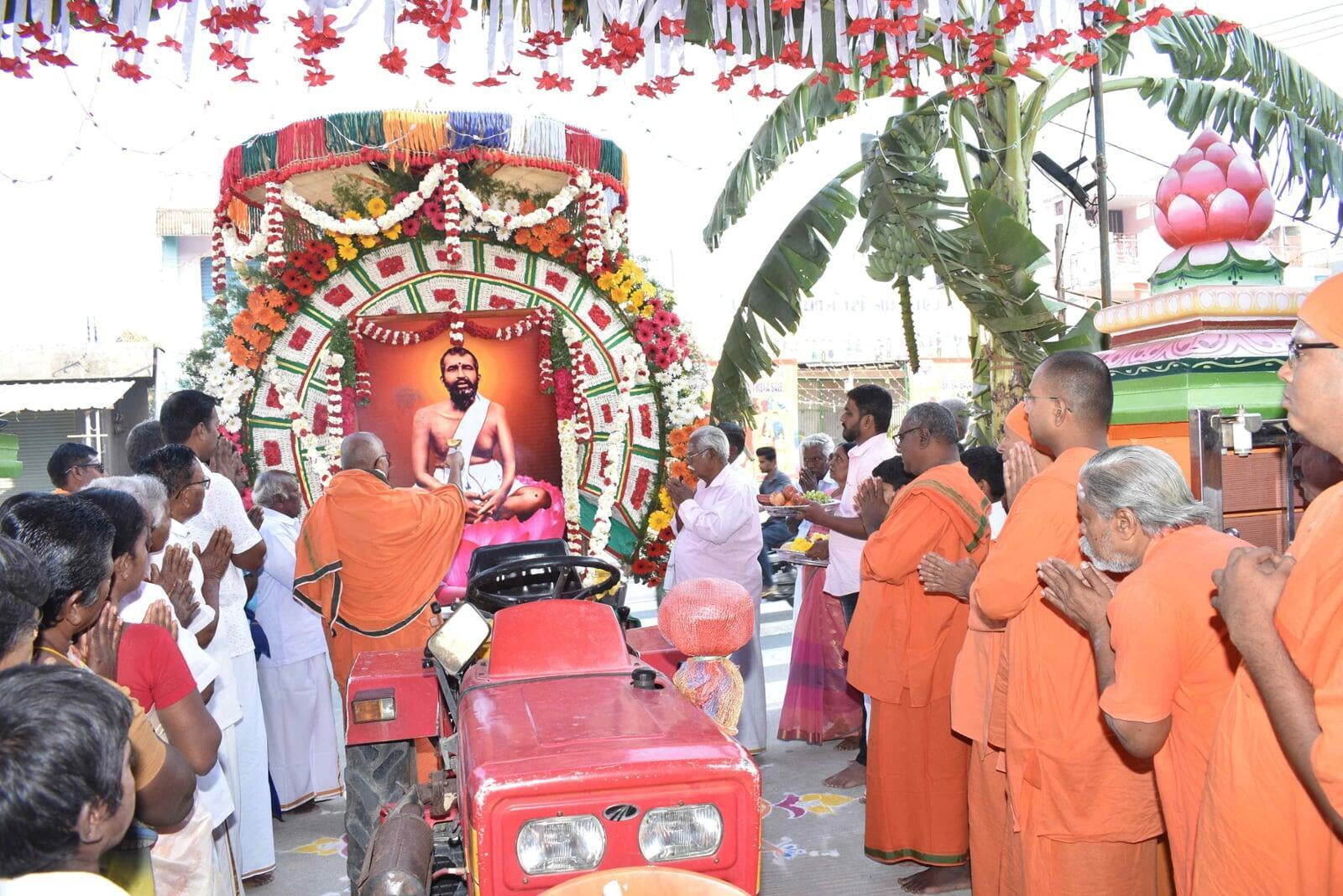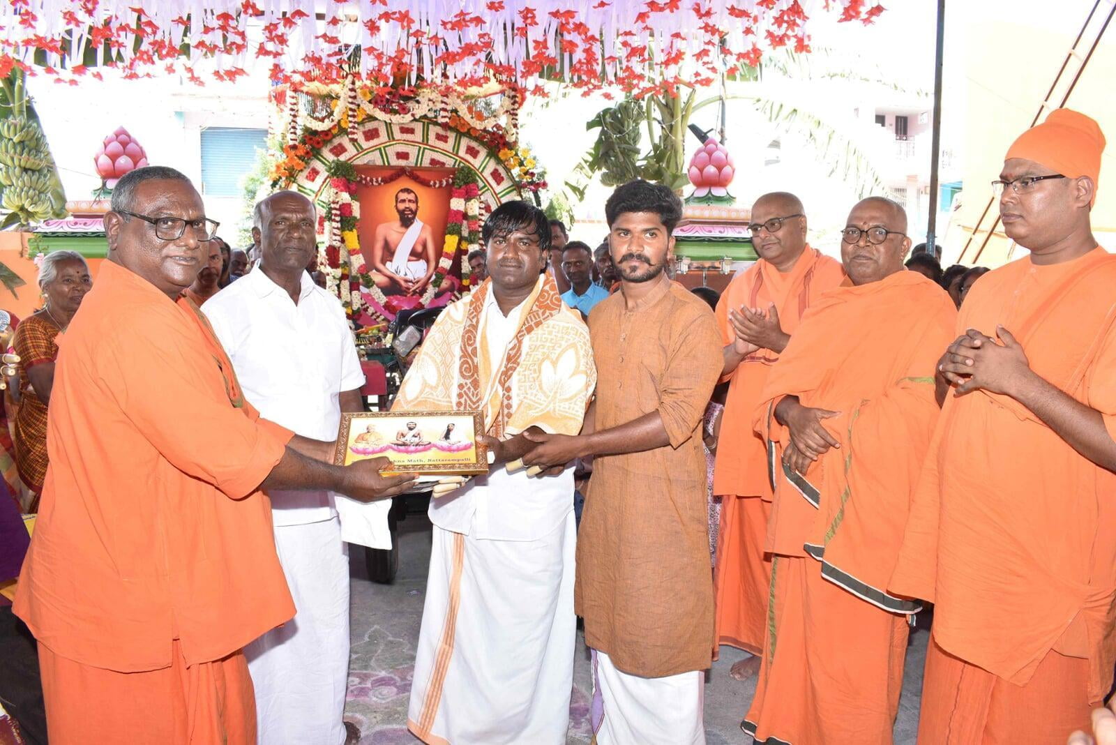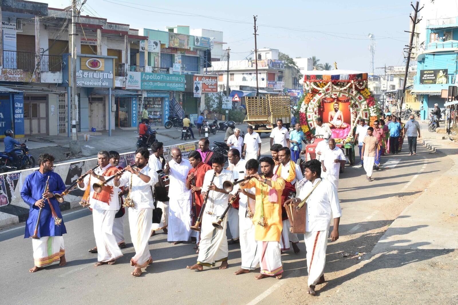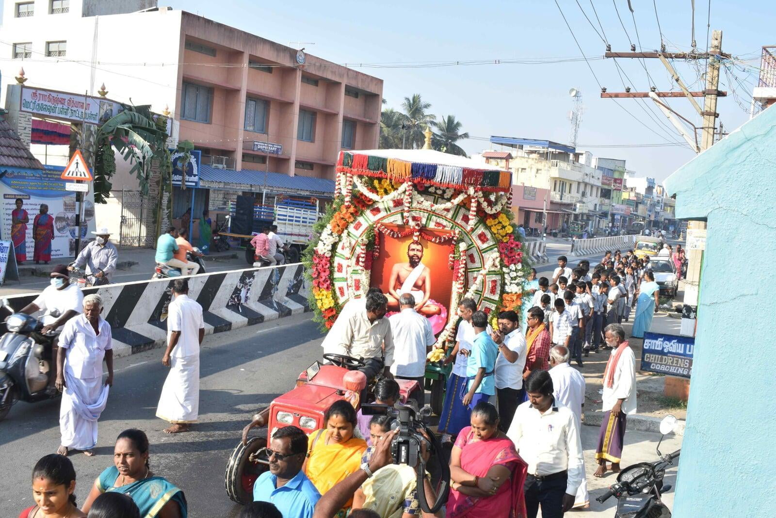 At 8.00 am the decorated Ratham of Shri Guru Maharaj started the procession. The ratham went along the streets of Nattrampalli village and returned to the Math by 12.30 pm.