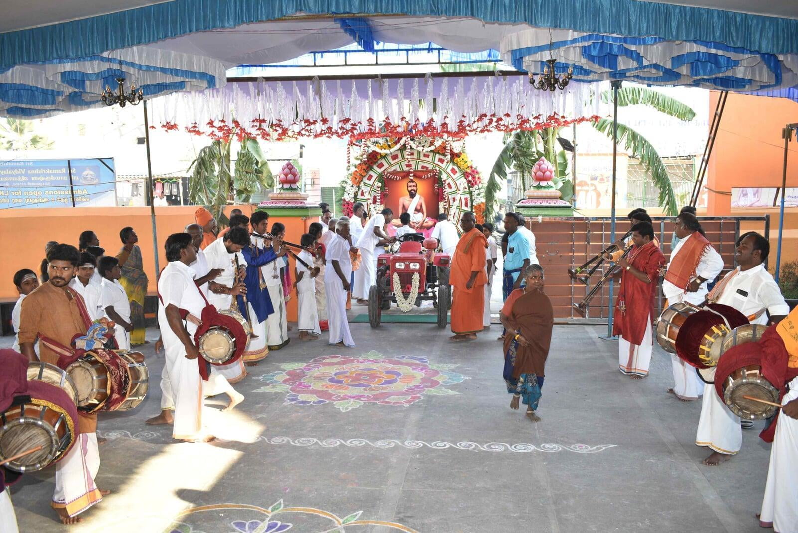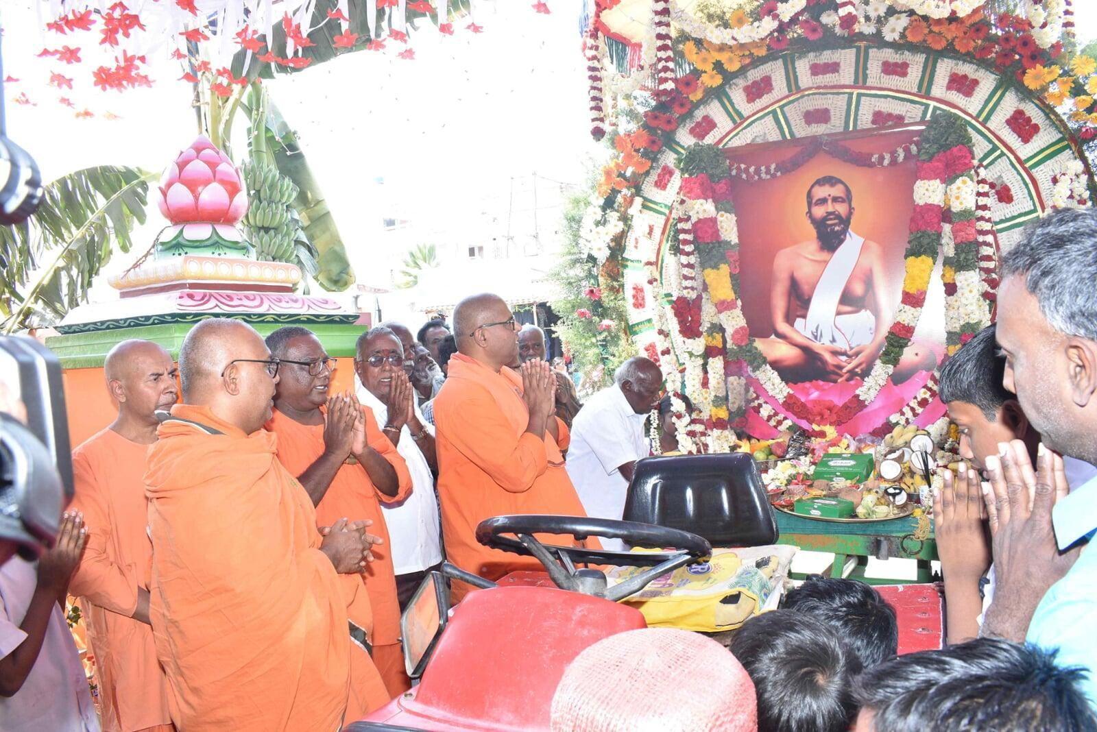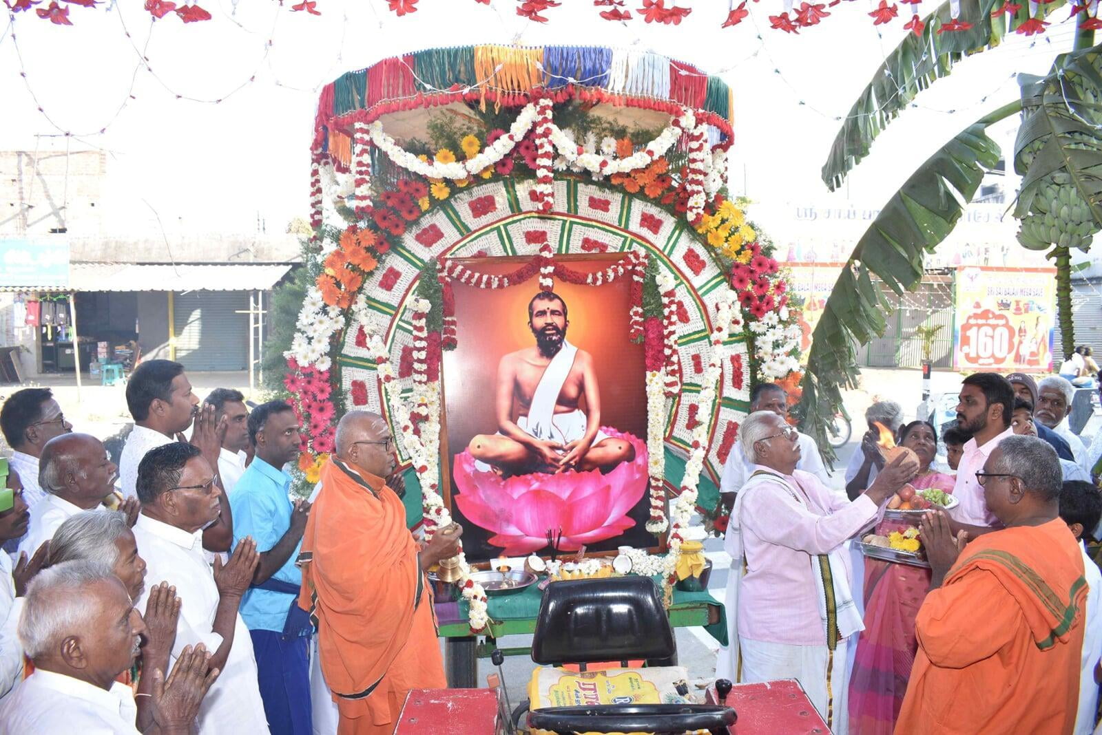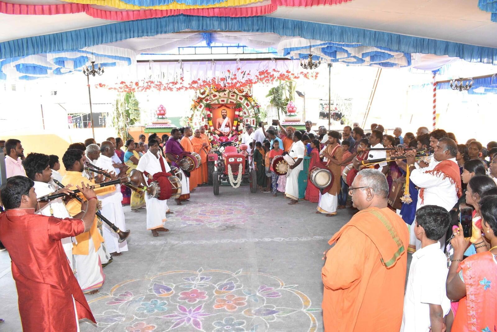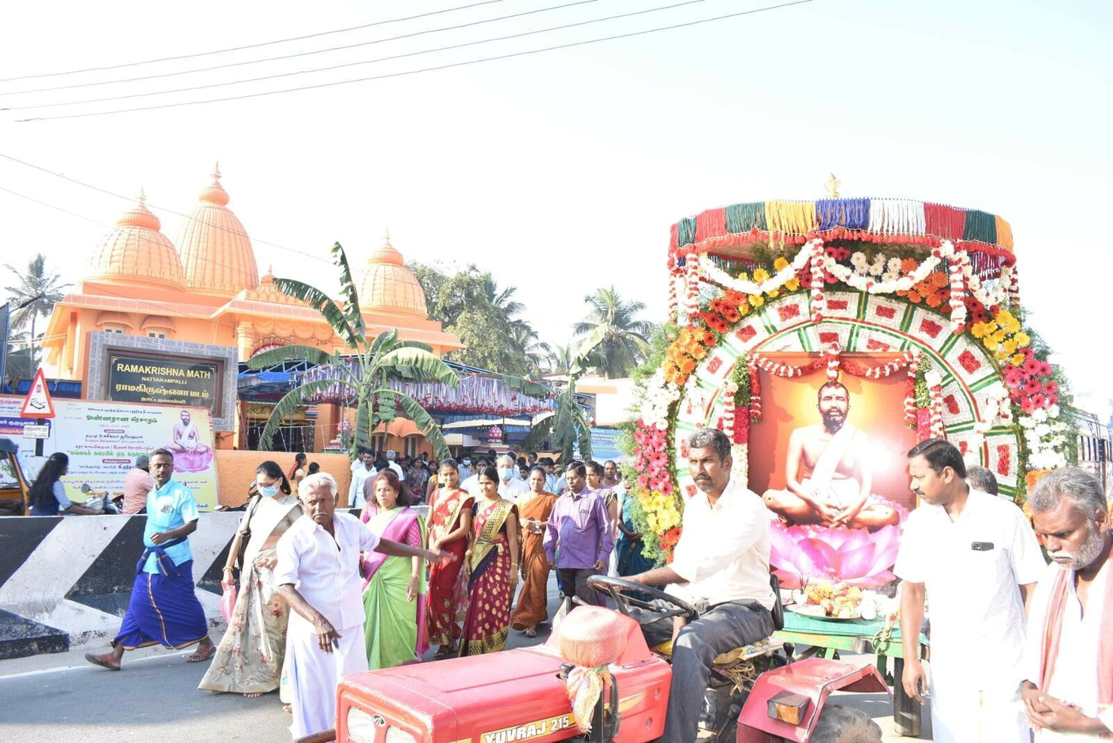 At 8.00 am the decorated Ratham of Shri Guru Maharaj started the procession. The ratham went along the streets of Nattrampalli village and returned to the Math by 12.30 pm.