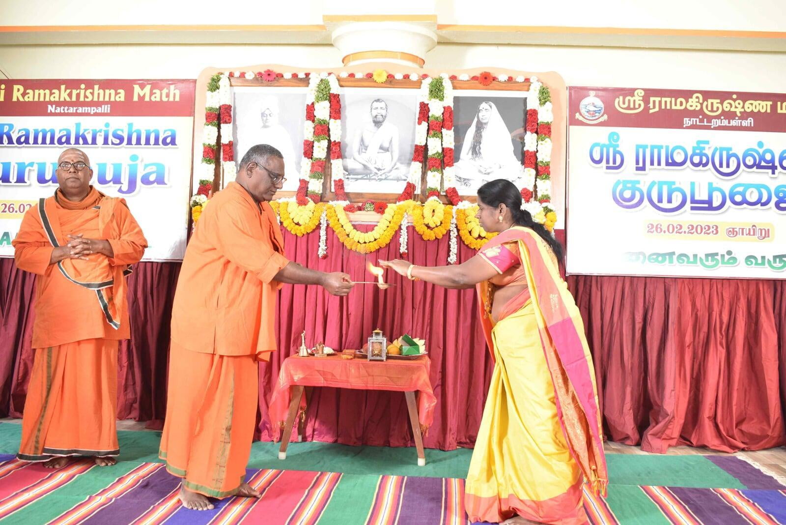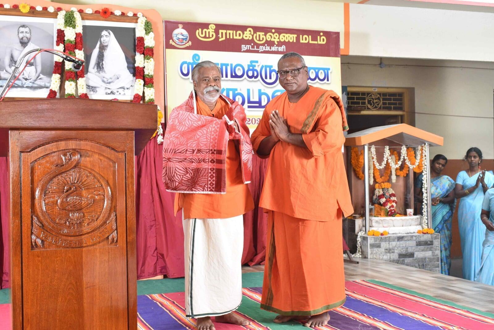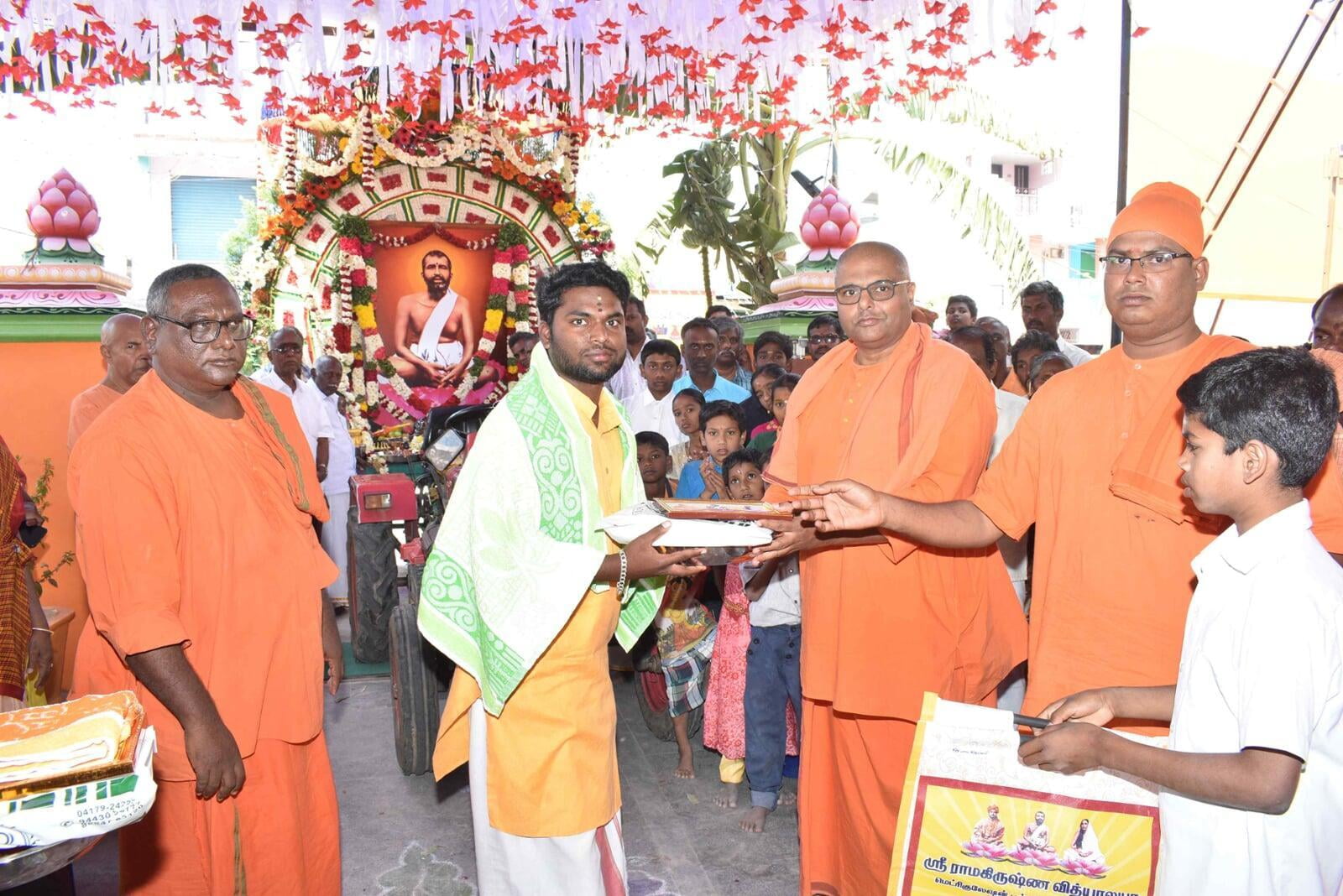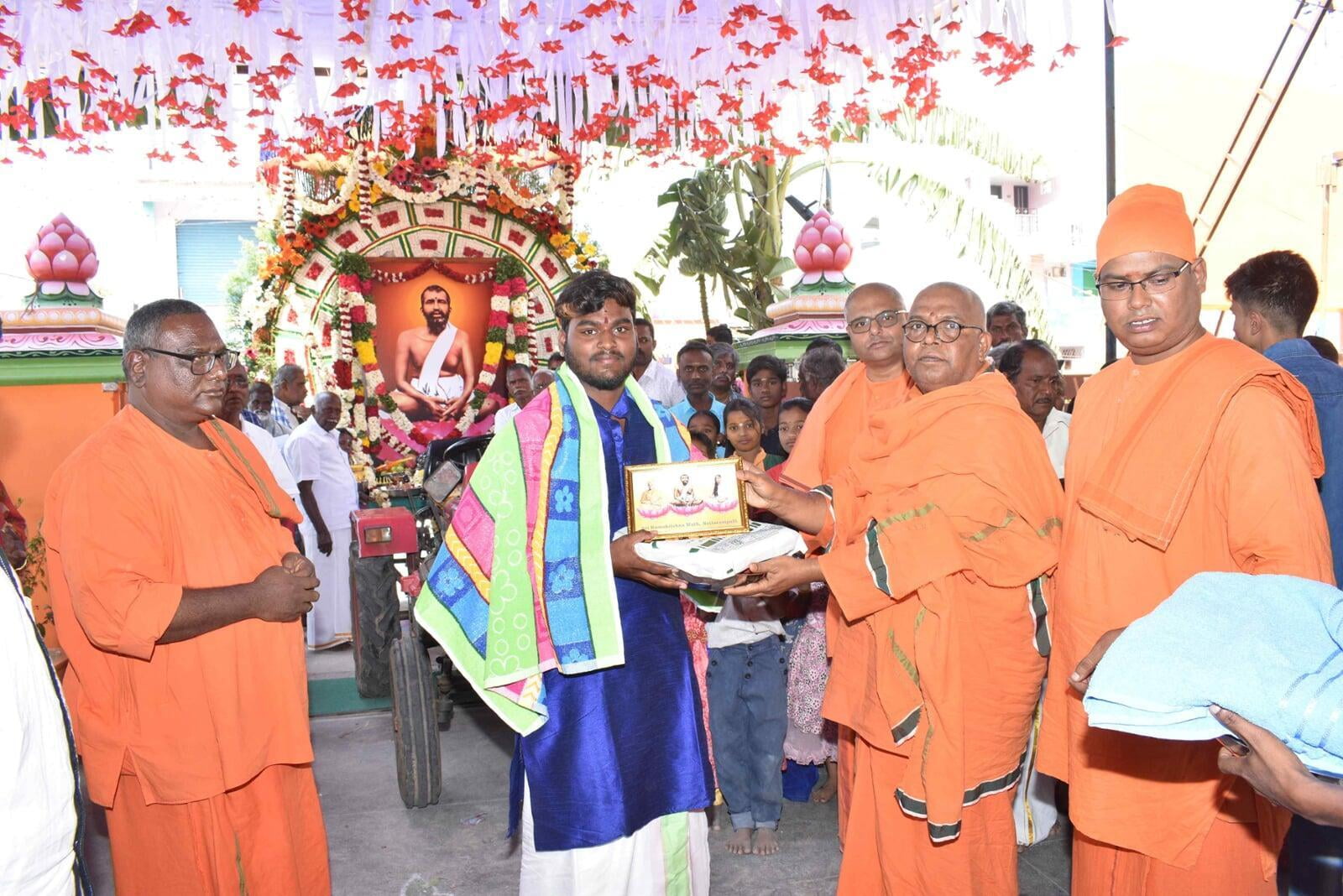 At 8.00 am the decorated Ratham of Shri Guru Maharaj started the procession. The ratham went along the streets of Nattrampalli village and returned to the Math by 12.30 pm.