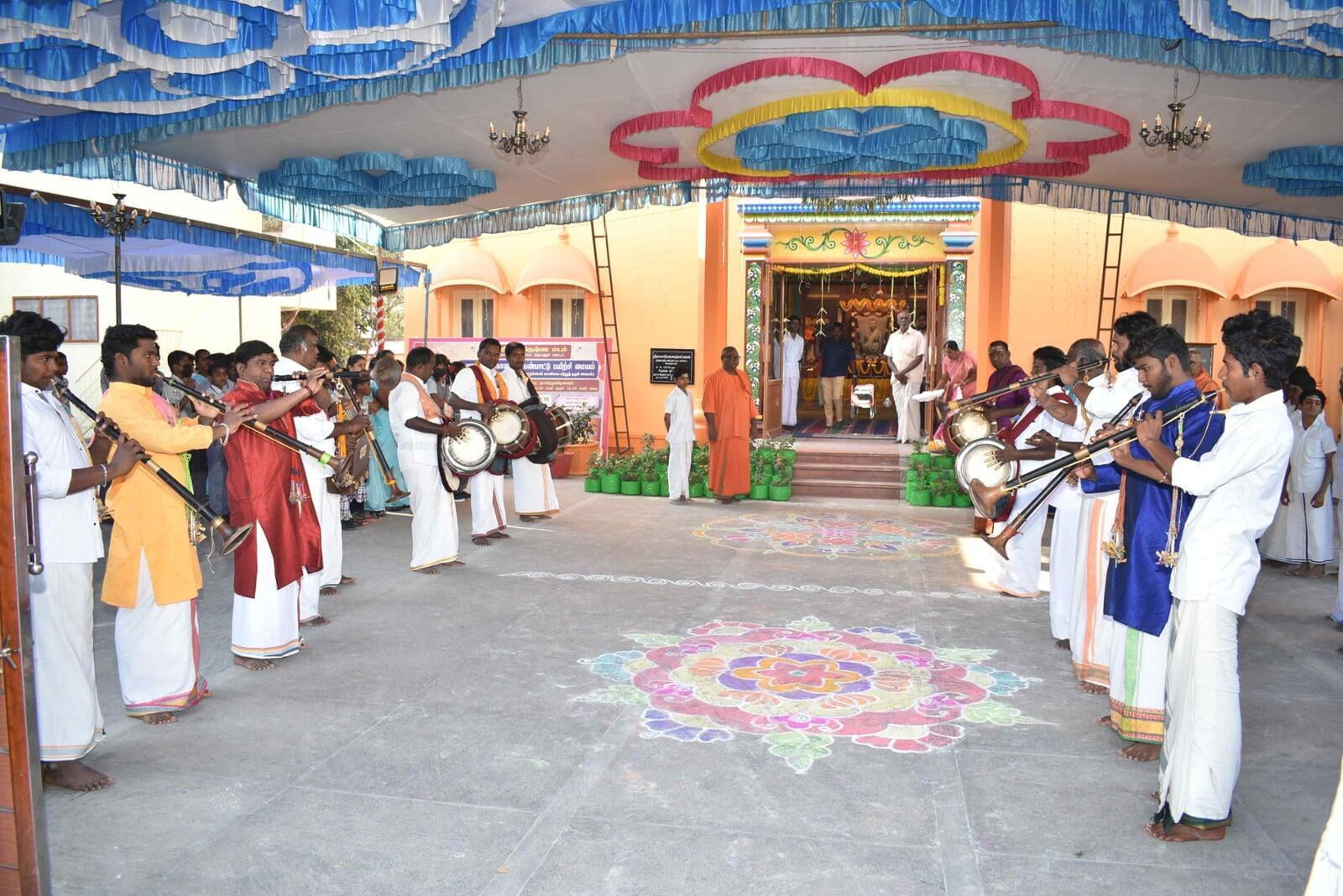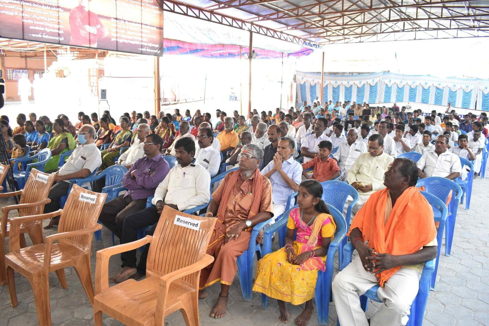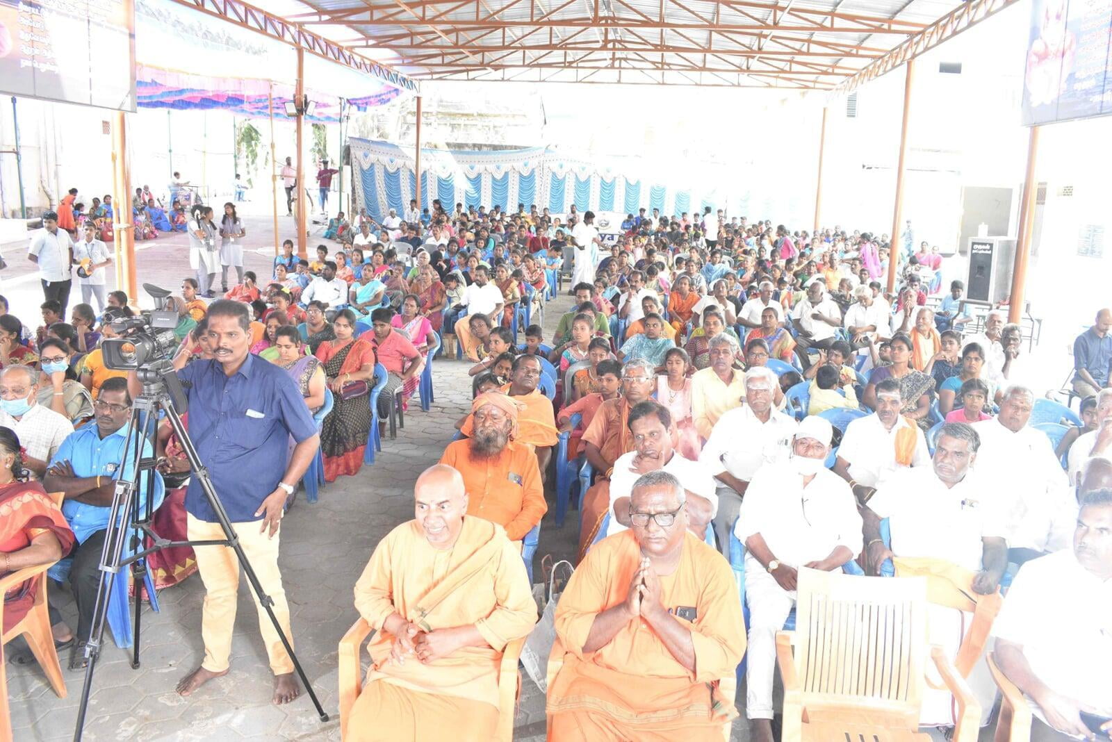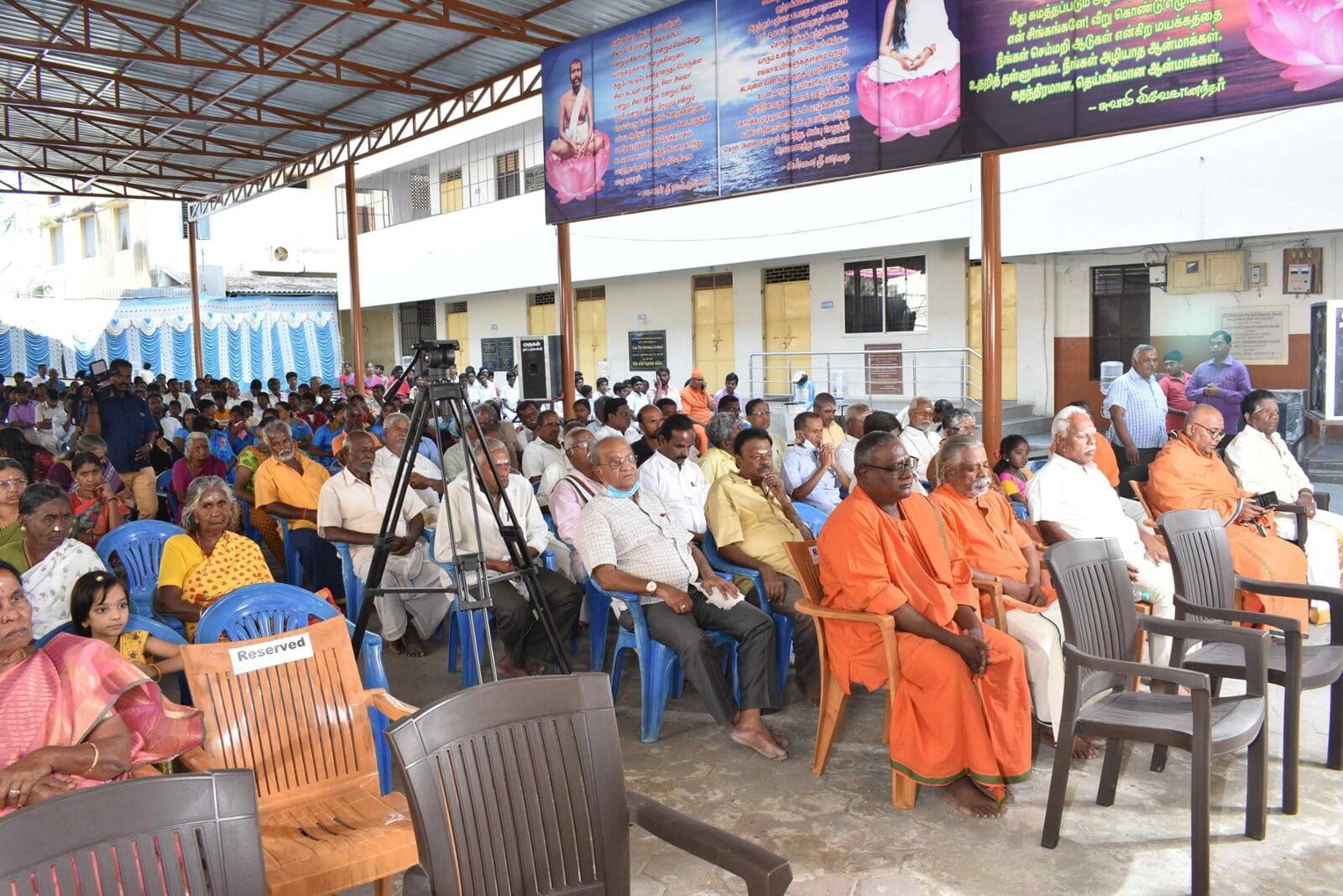 The Afternoon session started at 2:30 p.m. Musical Oration "An Ocean of Mercy on the Banks of Ganga" was performed by Sentamil Warithi K. Dattatreyan and Maha Periyava Bhajan Mandali Group, Coimbatore. People from nearby villages attended the function throughout the day.