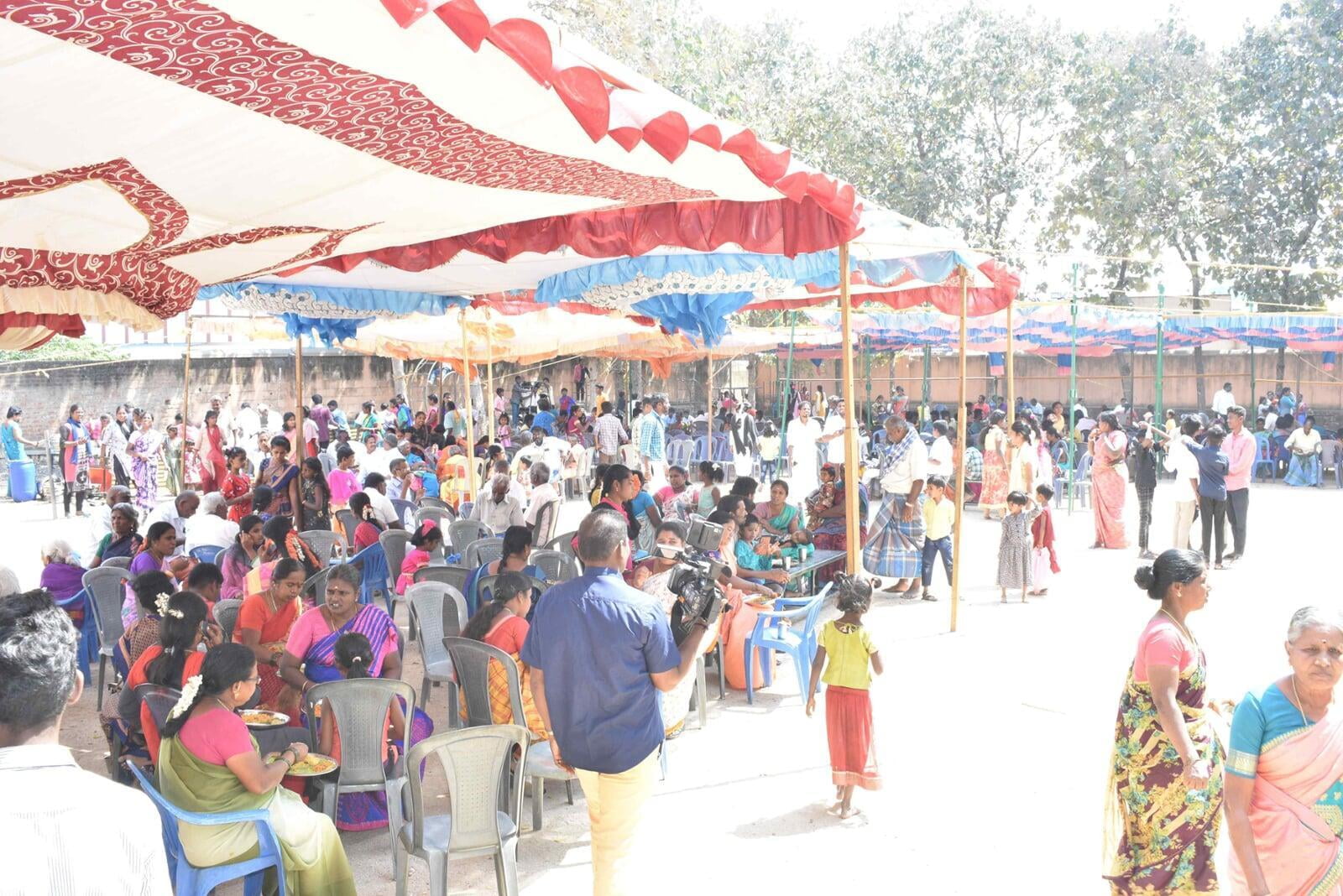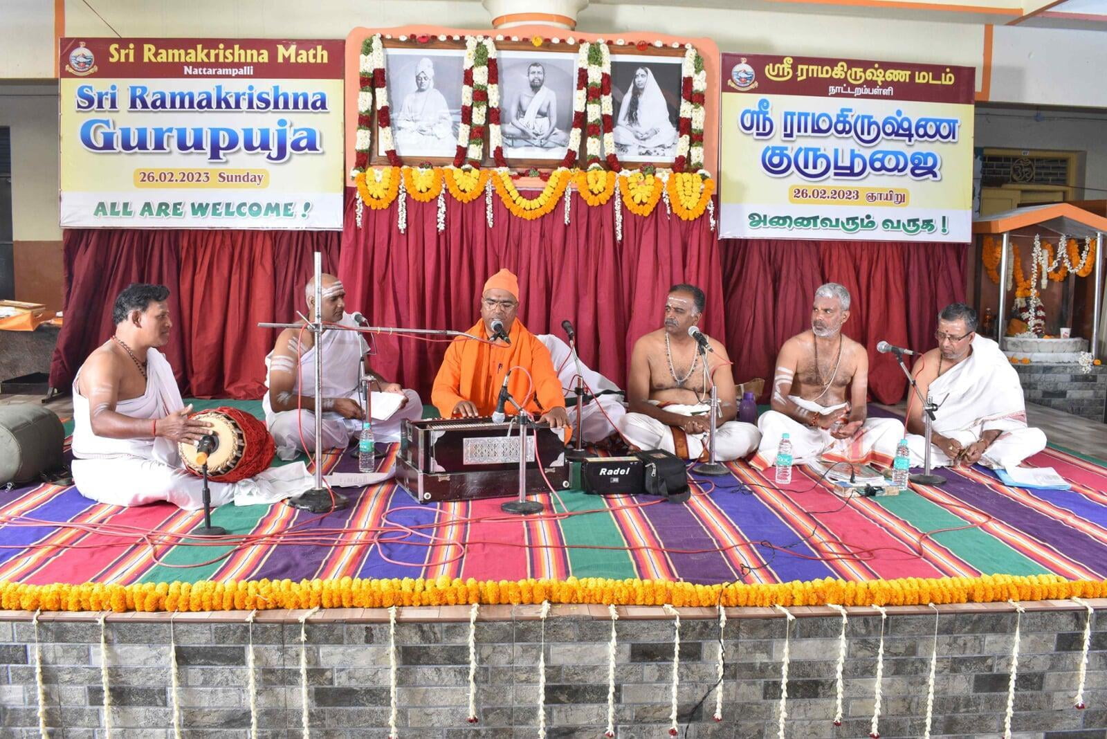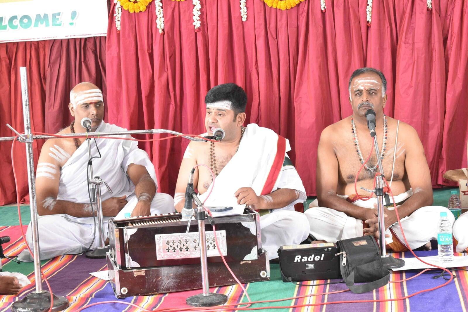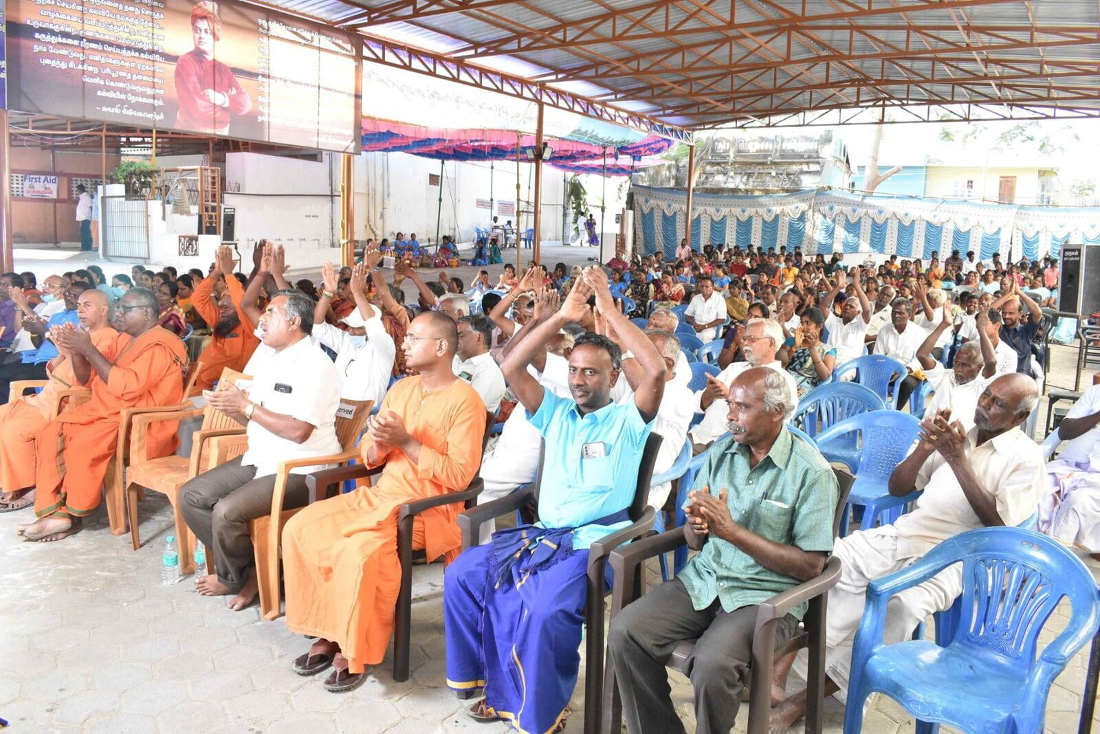 The Afternoon session started at 2:30 p.m. Musical Oration "An Ocean of Mercy on the Banks of Ganga" was performed by Sentamil Warithi K. Dattatreyan and Maha Periyava Bhajan Mandali Group, Coimbatore. People from nearby villages attended the function throughout the day.