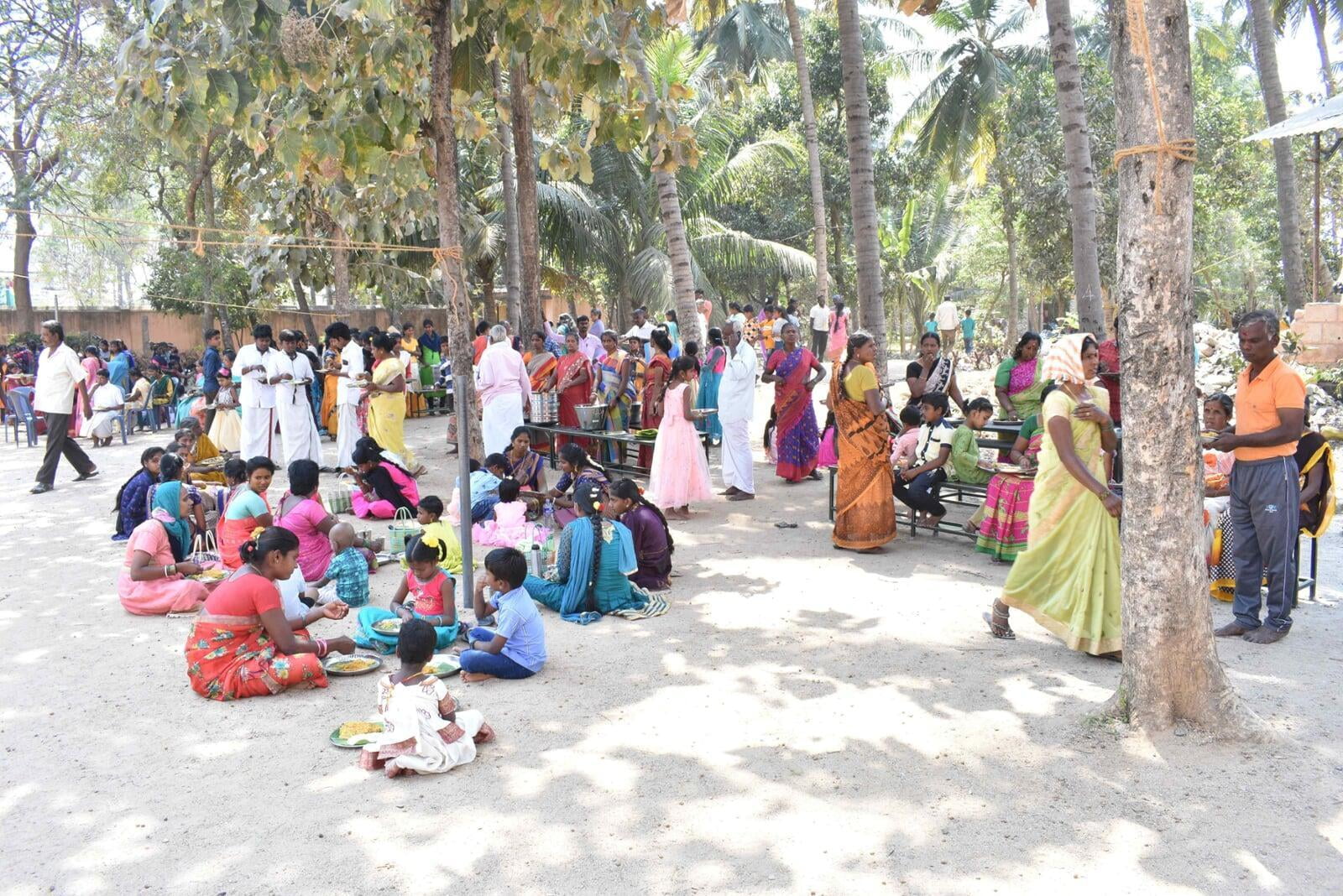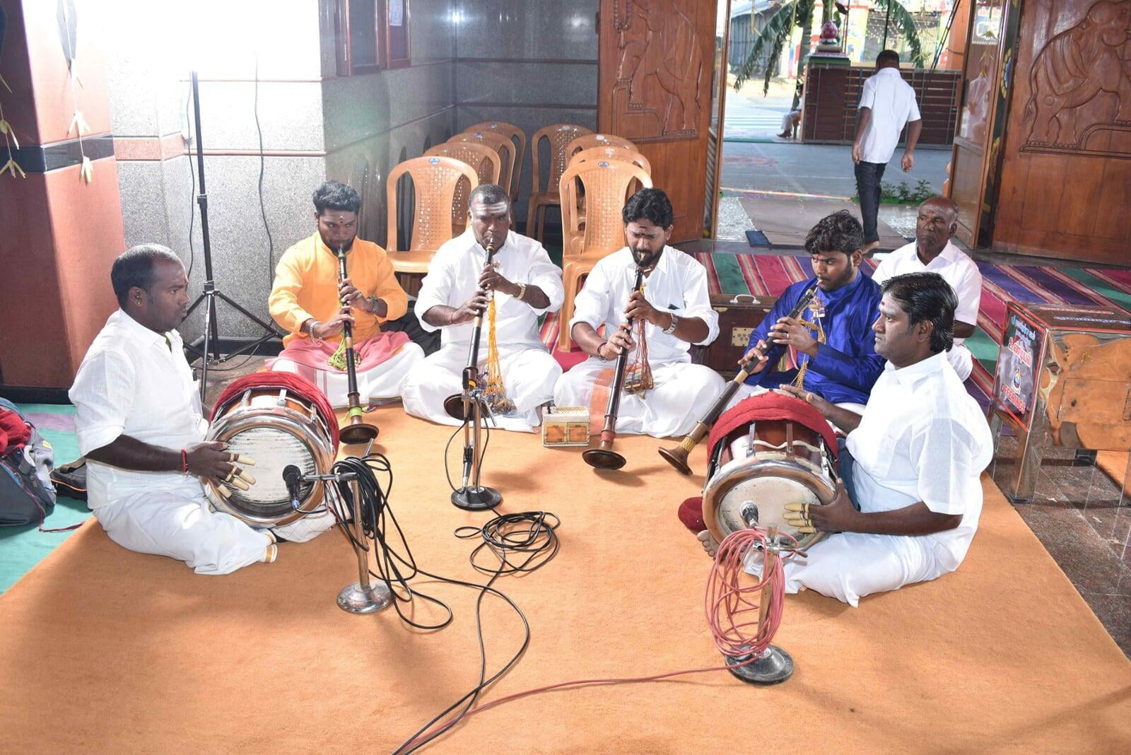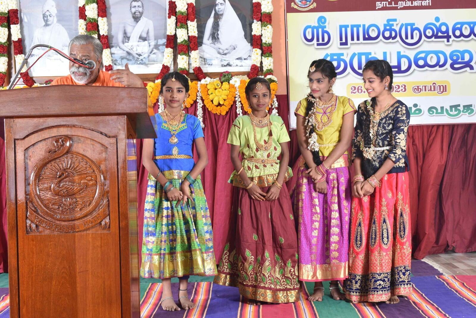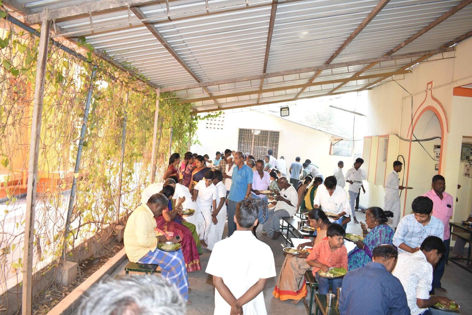 The Afternoon session started at 2:30 p.m. Musical Oration "An Ocean of Mercy on the Banks of Ganga" was performed by Sentamil Warithi K. Dattatreyan and Maha Periyava Bhajan Mandali Group, Coimbatore. People from nearby villages attended the function throughout the day.