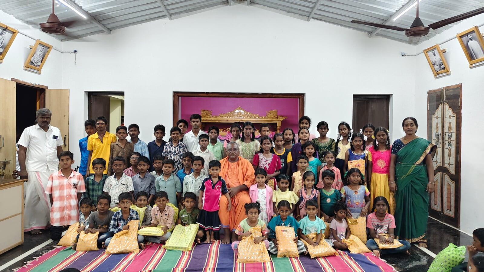 As part of the Deepavali celebrations, new dress materials were distributed to 203 children of our Free Tuition Centre at Kudimenahalli, Krishnagiri District. The event was organized with the kind support and initiative of Sri Prabhu, Sri Satish, and other well-wishers, who graciously arranged a small yet joyful function for the children.